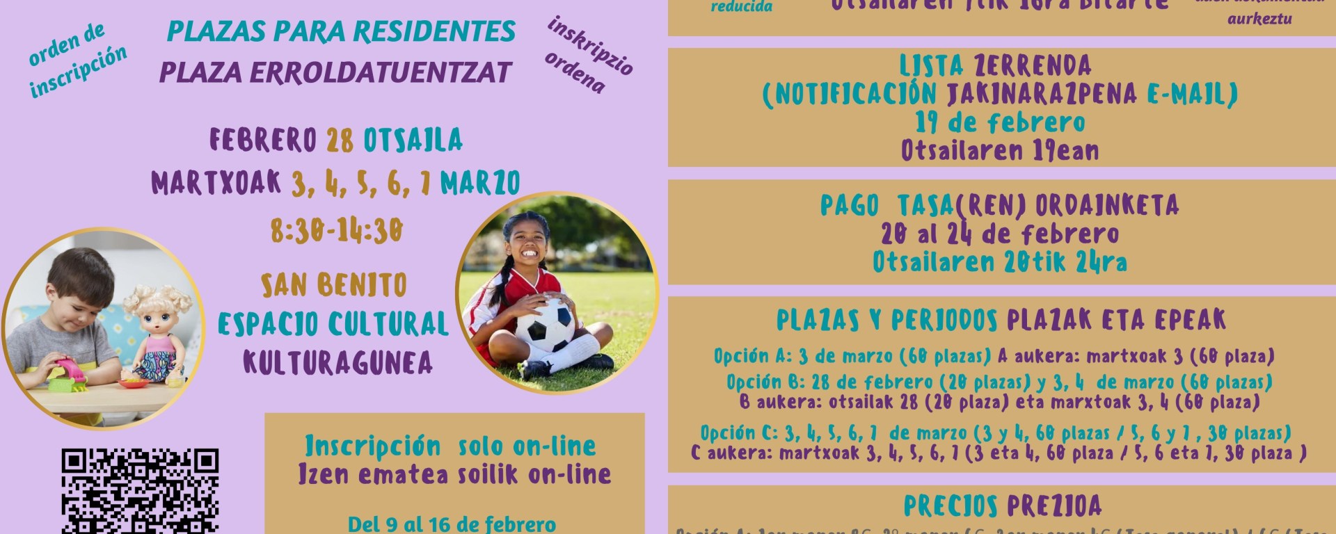 Estella-Lizarrako Udalak, Berdintasun Arloaren bitartez, ludoteka zerbitzua eskainiko du aurten ere inauteriengatik. Otsailaren 28an eta martxoaren 3, 4, 5, 6 eta 7an egonen da martxan San Beniton. Izen-emateak on-line egin ahal izanen dira, otsailaren 9tik 16ra, lotura honetan. https://www.estella-lizarra.com/preinscripcion-ludoteca-carnaval-2025-2025eko-inauterietako-ludotekarako-aurreinskripzioa/ Informazio gehiago, loturan.