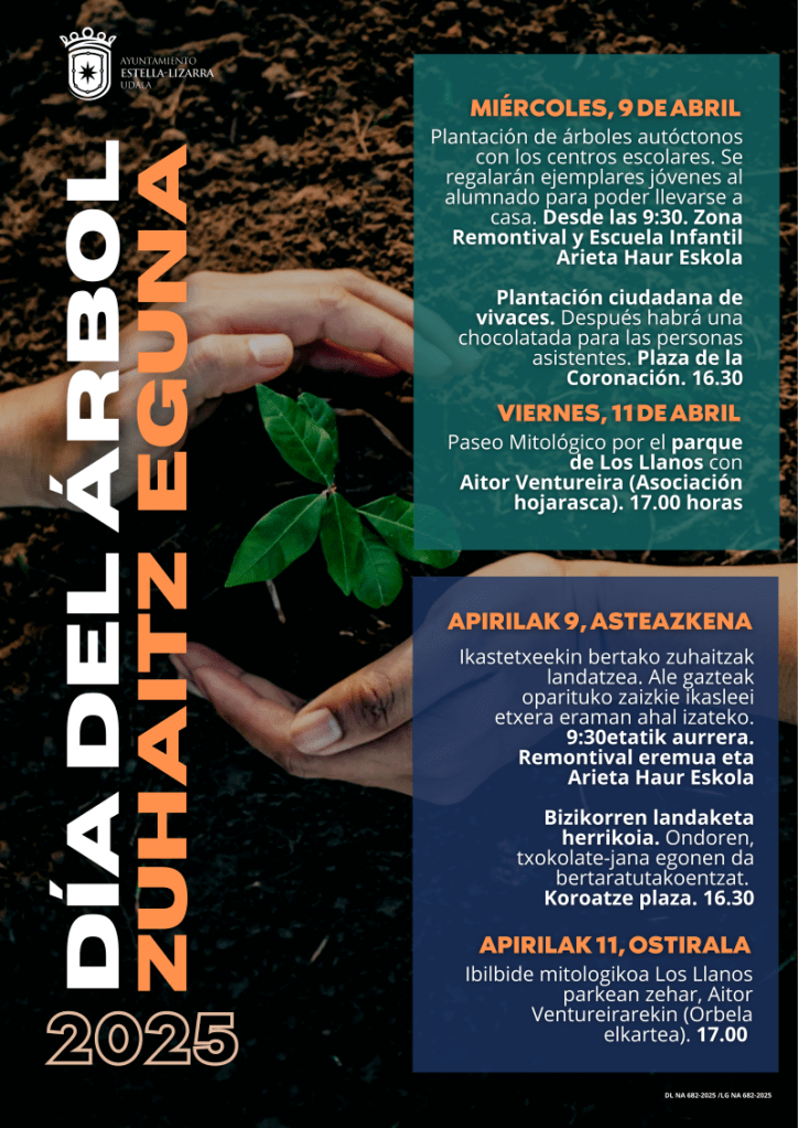 El Área de Medio Ambiente del Ayuntamiento de Estella-Lizarra ya tiene listo el programa de actividades para conmemorar un año más el Día del Árbol. Las actividades tendrán lugar la segunda semana de abril y estarán dirigidas a públicos diferentes.
