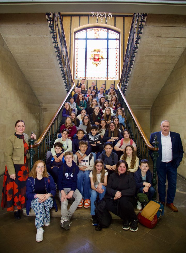 El Ayuntamiento de Estella-Lizarra ha organizado este mediodía una recepción oficial a un grupo de estudiantes de 2º, 3º y 4º de la ESO del IES Tierra Estella y de distintos centros europeos con los que están realizando un intercambio dentro del programa Erasmus +. En concreto, con estudiantes de Sentjur (Eslovenia), Resende (Portugal) y Dax (Francia). La alcaldesa, Marta Ruiz de Alda, y los concejales Azucena Polo y Santos Mauleón han ejercido de anfitriones, deseándoles una buena estancia en la ciudad y animándoles a regresar en el futuro.