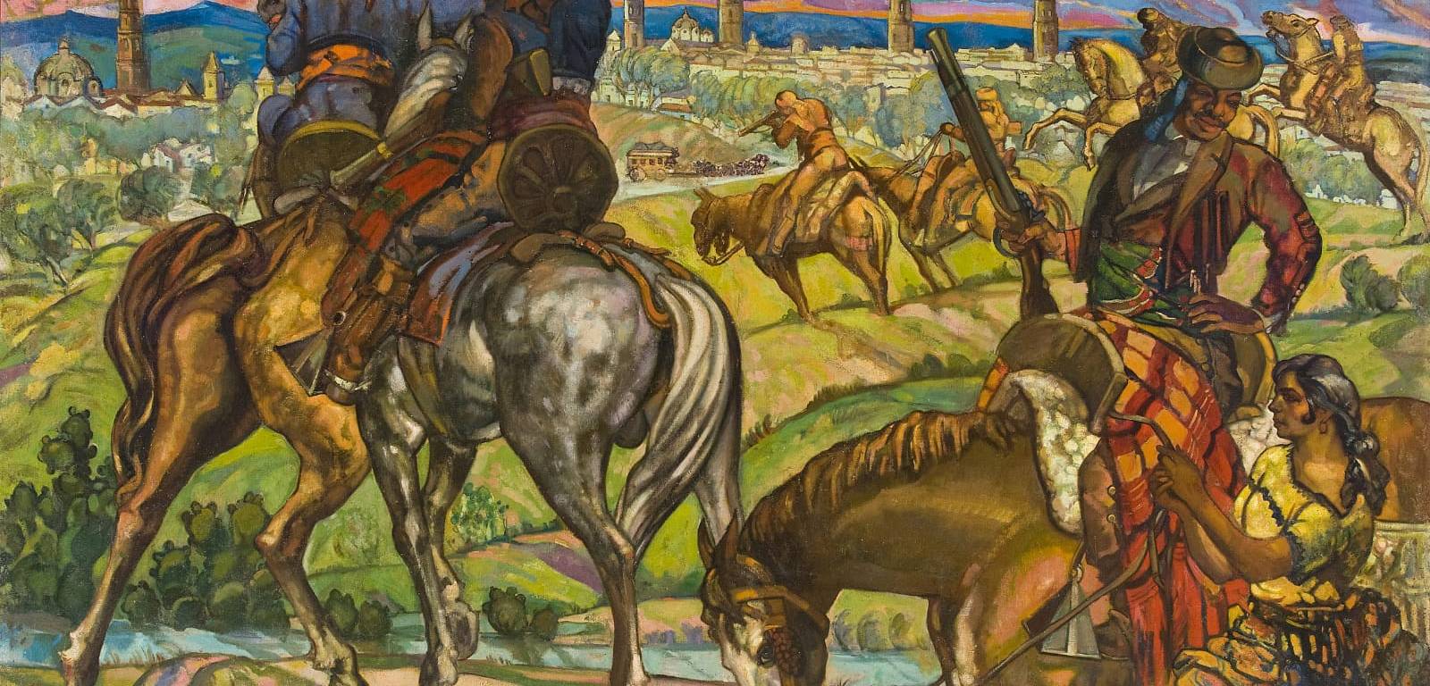 ‘Los siete niños de Écija’ es un cuadro de gran formato (395 x 288 cm) fechado en 1928, que forma parte de la colección permanente del Museo Gustavo de Maeztu de Estella-Lizarra. Representa a una popular cuadrilla de bandoleros famosa por sus enfrentamientos a las tropas de Napoleón en Sevilla y Córdoba entre 1814 y 1818, cuyo recuerdo ha perdurado en el imaginario popular como una leyenda. El cuadro del artista alavés afincado en Estella-Lizarra fue restaurado en 2019, bajo la dirección del Servicio de Patrimonio Histórico del Gobierno de Navarra.