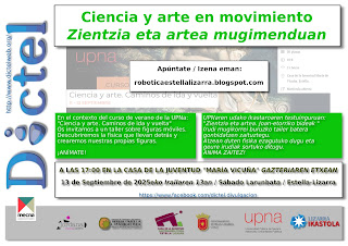 El próximo sábado 13 de septiembre empezamos el nuevo curso con un Taller titulado Ciencia y Arte y en Movimiento. Esta vez vamos a integrar este Taller dentro de un Curso de Verano de la Upna, Titulado Ciencia y Arte: caminos de ida y vuelta. En este taller vamos a construir una Escultura Cinética, es decir vamos a jugar con el Arte y el Movimiento. … Continúa leyendo Taller Ciencia y Arte en Movimiento