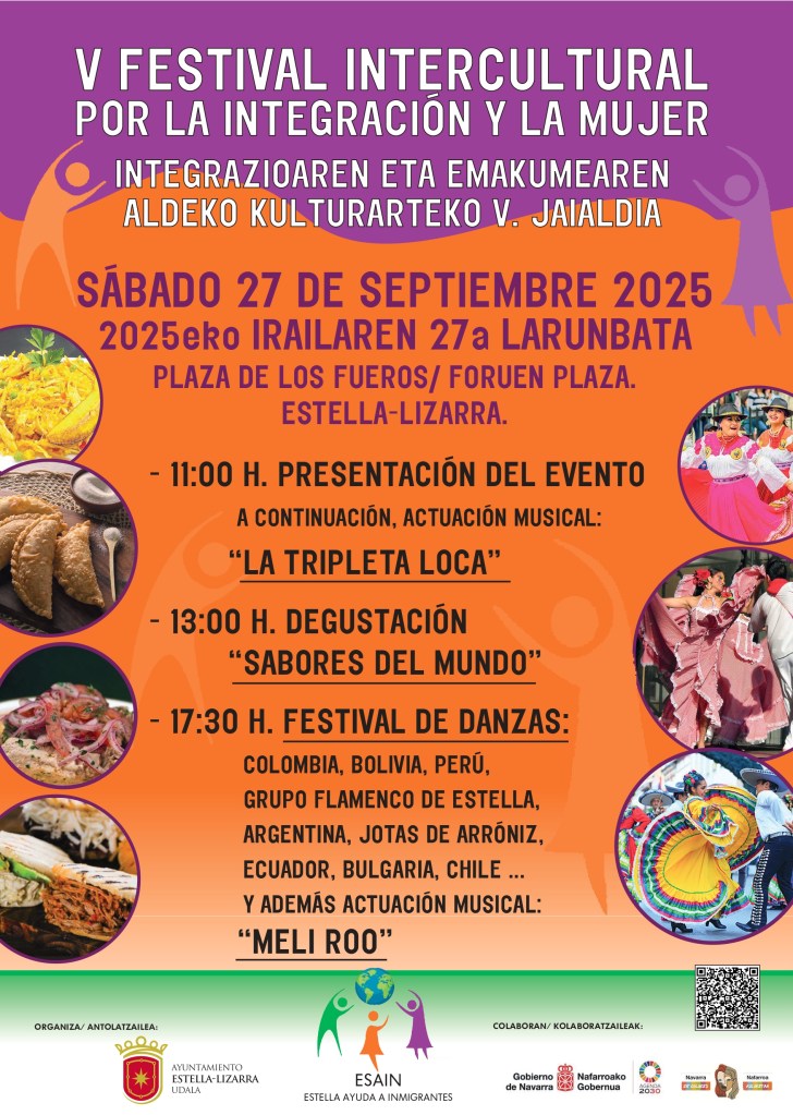 El próximo sábado 27 de septiembre se celebra en Estella-Lizarra la quinta edición del Festival Intercultural por la Integración y al Mujer de la mano de la asociación de mujeres migrantes ESAIN y el Ayuntamiento, que por primera vez pasa de ser colaborador a organizador.