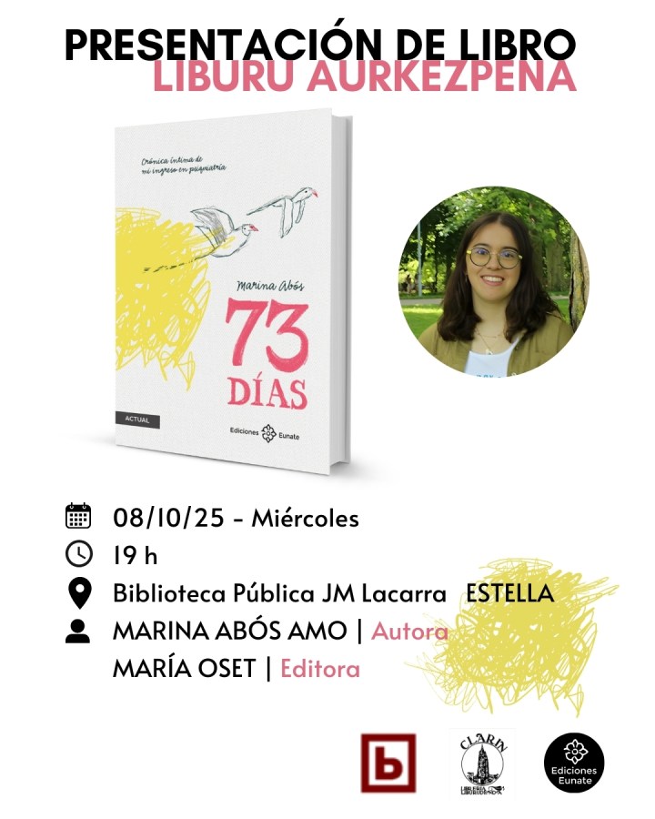 Presentación del libro *73 días: Crónica íntima de mi ingreso en psiquiatría* de la joven estellesa Marina Abós Amo,