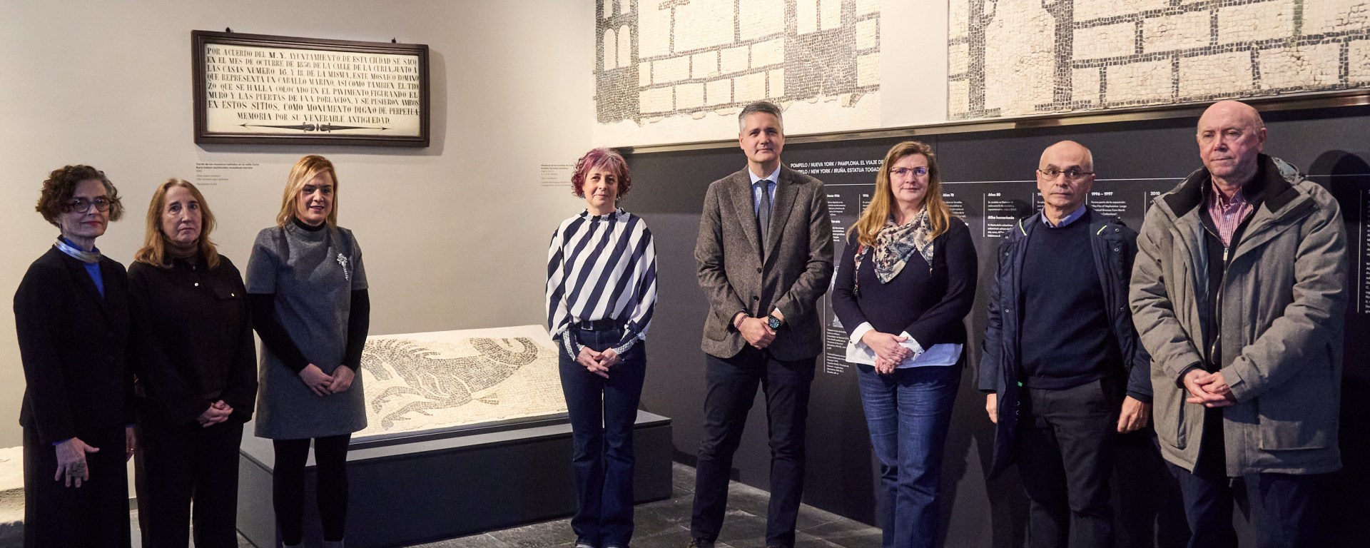 El Museo también ha aprovechado estos últimos meses para actualizar algunos contenidos de cartelas y textos, así como de la línea del tiempo de la sala 4.1. En la sala de las pinturas murales procedentes del palacio de Oriz se ha mejorado la mediación mediante la colocación de cartelas explicativas de las diferentes escenas que representan la batalla de Mühlberg (1547). Se ha recolocado la estatua togada en la sala 5.4, que se exhibe junto con el mosaico del hipocampo, hallado en el mismo momento que el de las murallas de Creta, y que ha sido trasladado desde los fondos de Arqueología. Asimismo, se ha confeccionado una nueva hoja de sala disponible en cuatro idiomas que guía el recorrido por las piezas más importantes del Museo, incluyendo en el mismo las recientes incorporaciones de la Mano de Irulegi, el Hombre de Loizu y la estatua togada.